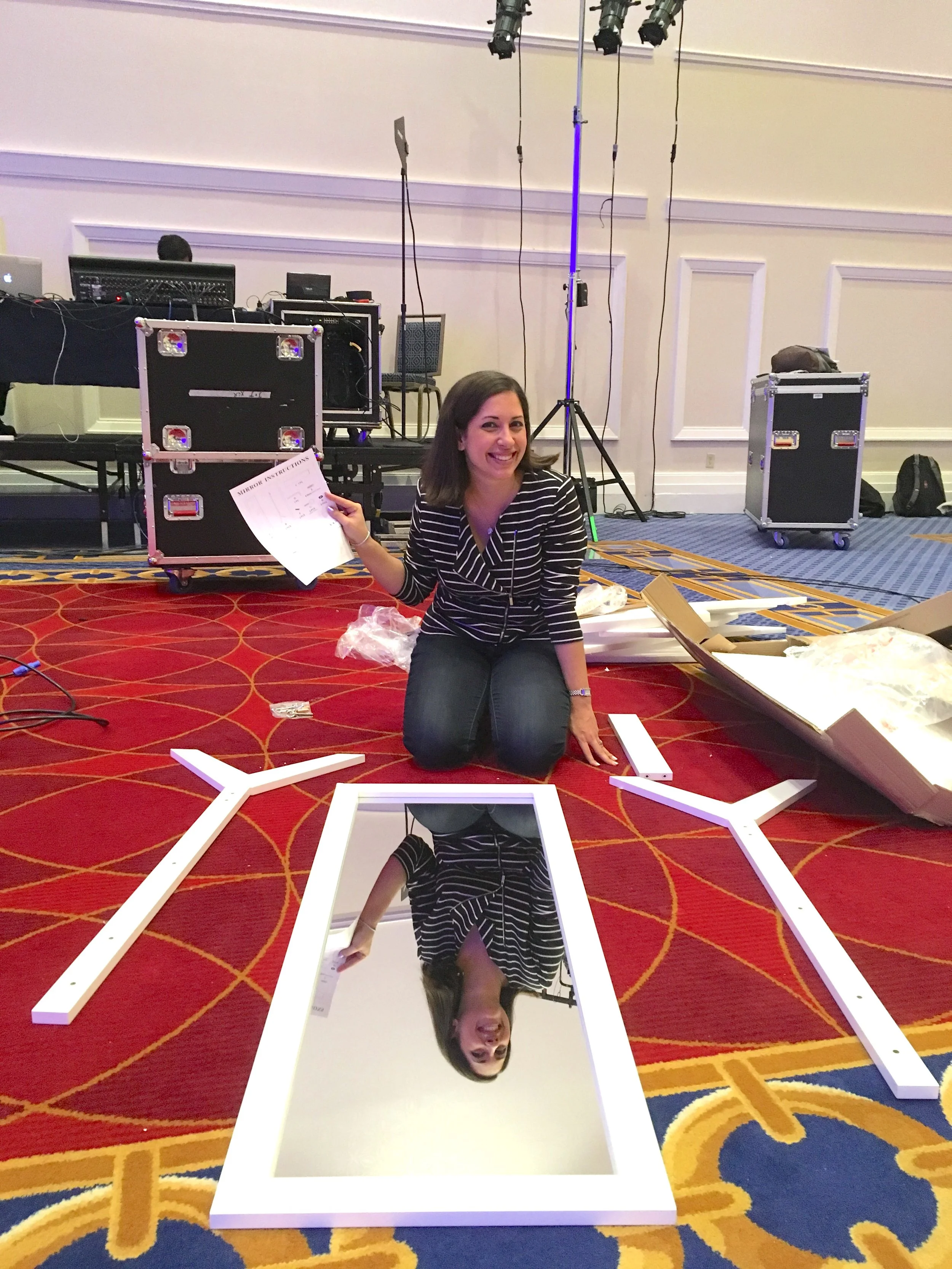 Years ago, I was onsite for a corporate client event at a Convention Center in Maryland when several large mirrors arrived… in the original boxes, in pieces.